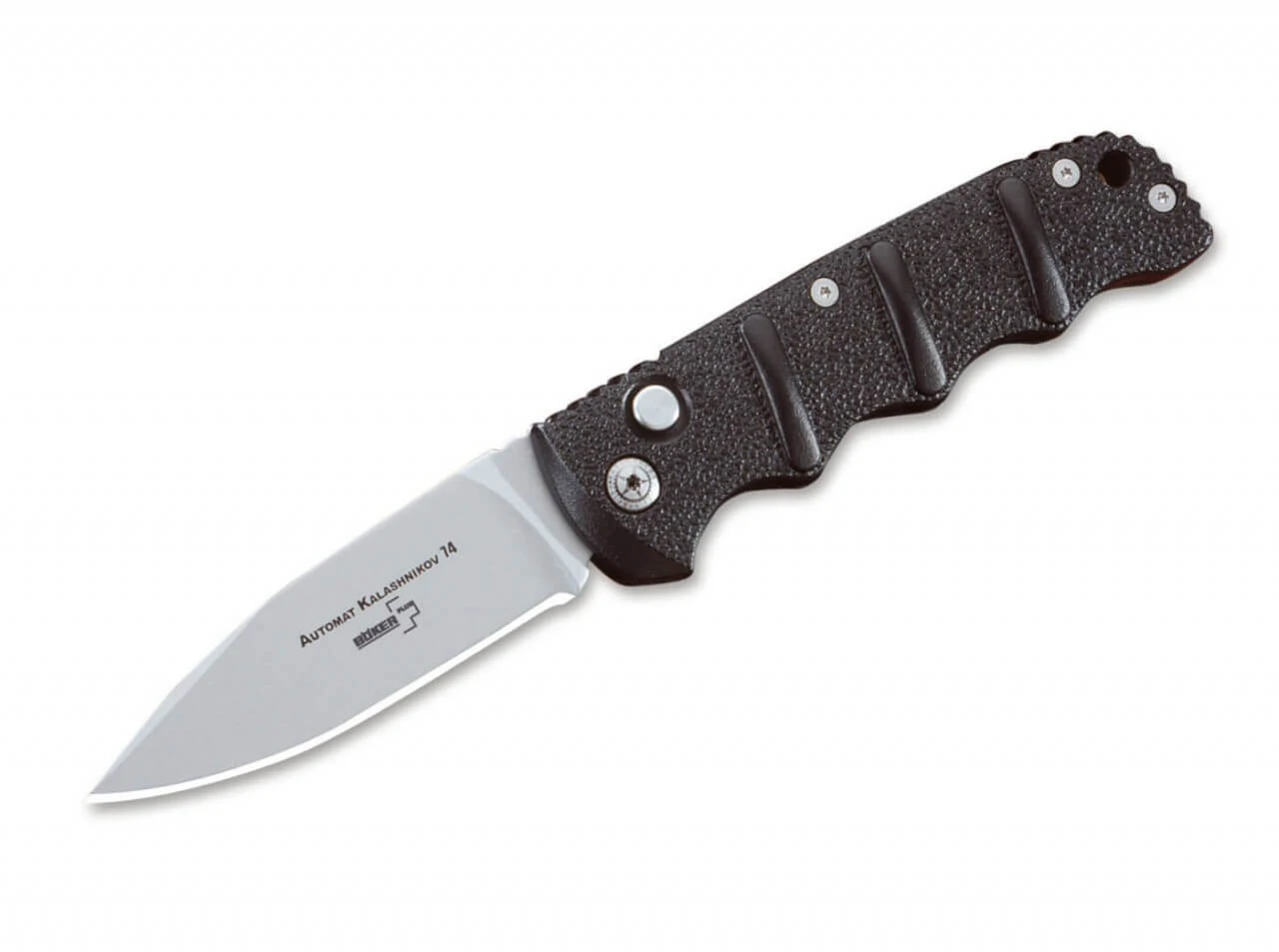 Das Böker Plus AKS-74 aus der Kalashnikov-Serie gehört mit Sicherheit zu den beliebtesten Modellen unseres Sortiments und wurde in den vergangenen Jahren in zahlreichen verschiedenen Varianten produziert. Mit dieser High-End-Version des Automatikmessers verneigen wir uns vor unseren Fans und deren Treue zu uns und bieten mit dem pulvermetallurgischen Hochleistungsstahl CPM-S-30V in der Kalashnikov-Serie ein ganz besonderes Highlight an. Der amerikanische Hochleistungsstahl ist seit vielen Jahren einer der Top-Klingenstähle weltweit und durch den hohen Materialpreis eigentlich ausschließlich im Hochpreissegment vertreten. Das Satin-Finish der Klingen hebt die Sonderversion auch optisch noch einmal deutlich ab. Der schwarze Griff aus Aluminium erinnert stark an das Bajonett des berühmten Sturmgewehrs und die erhabenen Strukturbahnen bieten in jeder Situation sicheren Halt. Mit Clip (Tip-Up).