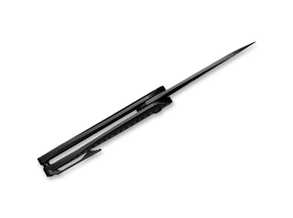 Das elegante WE Knife Black Void wartet mit klarer Formensprache und einem edlen Materialmix auf. Während die schwarze Klinge aus pulvermetallurgischem CPM-20 CV Souveränität ausstrahlt, überzeugt der Titangriff mit Schalen aus Kohlefaser durch seine sichere Handhabung. Geöffnet wird das Messer mit dem eleganten Flipper und gesichert wird die kugelgelagerte Klinge per Linerlock. Mit Titanclip (Tip-up/r).