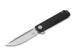 Die stabile Klinge aus satiniertem 440C ist mit einem Flachschliff und einer beidseitigen Hohlkehle versehen. Die Riffelungen im Bereich der Daumenauflage und auf dem Spacer erhöhen zudem die Arbeitssicherheit. Die geradlinige Konstruktion ist mit texturierten Griffschalen aus schwarzem G10 ausgestattet, die dreidimensional gefräst werden und auf den Innenseiten mit gewichtsreduzierenden Aussparungen versehen sind. Mit Deep-Carry-Clip (Tip-up/r) und Fangriemenöse.