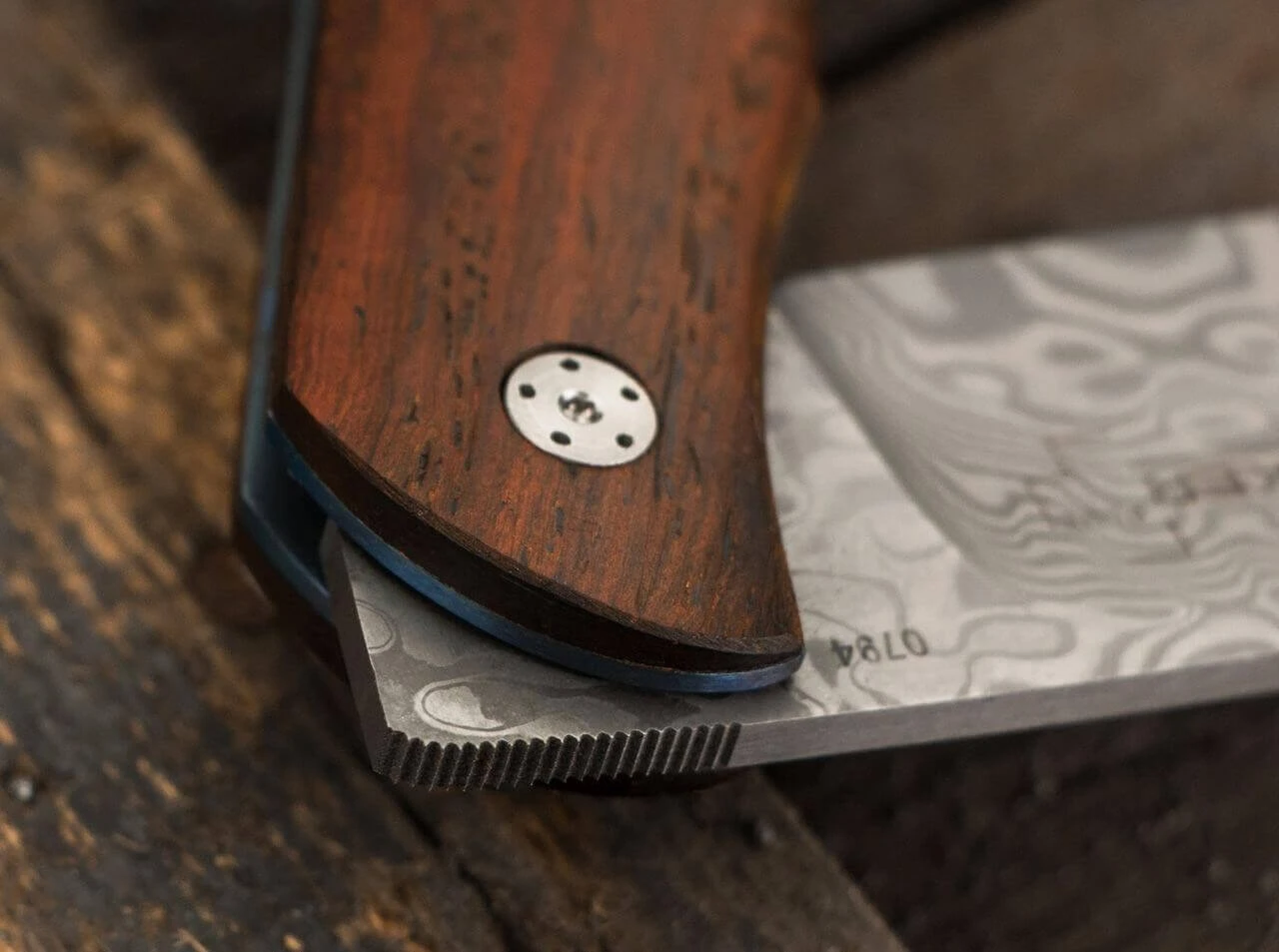 Kaum eine anderes Böker Plus Taschenmesser ist in den letzten Jahren so gefragt gewesen und in so zahlreichen Varianten erschienen wie das Exskelibur von Mike Skellern. Der Messermacher aus Südafrika hat mit seinem Entwurf eine der erfolgreichsten und beliebtesten Serien im Programm von Böker Plus begründet. Bei dieser Variante kommen blau anodisierte Titanplatinen, ein ebensolcher Clip und eine mit einem wunderschönen Muster versehene Klinge aus rostfreiem Damast mit 58 bis 60 HRC zum Einsatz und sorgen für eine unübertroffene Eleganz. Das Messer verriegelt per klassischem Linerlock. Die Griffschalen aus erlesenem Cocoboloholz weisen eine kräftigere Maserung auf und unterstreichen den edlen Charakter des Gentleman-Folders. Das lebhafte Holz verleiht dem Exskelibur einen etwas handfesteren Charme. Mit hochwertigem Nylon-Etui zur Aufbewahrung.