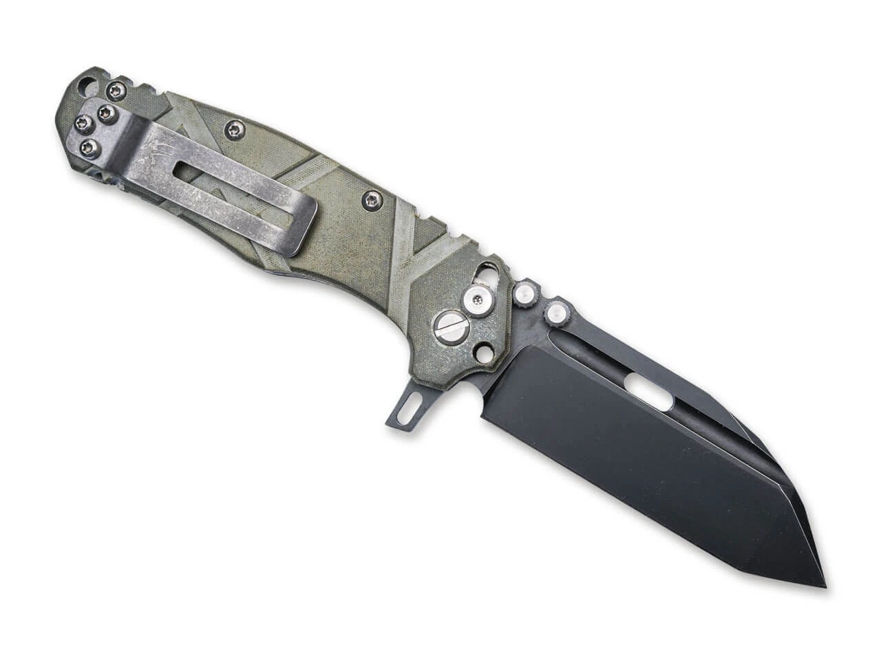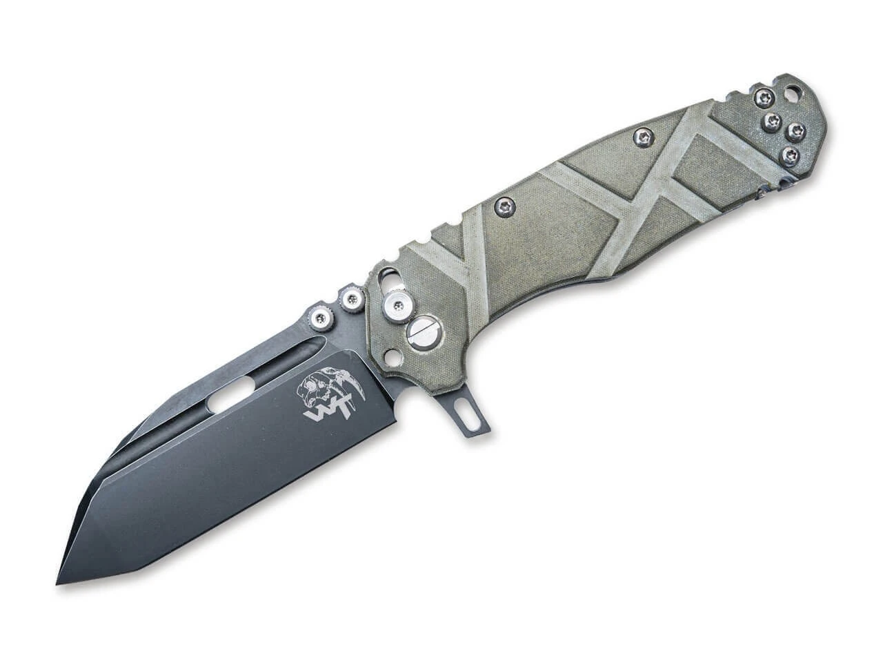 Das Wander Tactical Hurricane ist ein robustes taktisches Einsatzmesser, das mit einer massiven D2-Klinge ausgestattet ist. Sie ist mit einer widerstandsfähigen DLC-Beschichtung versehen und kann per Flipper oder Daumenpin bedient werden. Der aus grünem Micarta gefertigte Griff ist mit einer rutschfesten Texturierung versehen und beherbergt den zuverlässigen Axis Lock. Mit umsetzbaren Clip (Tip-up/l-r).