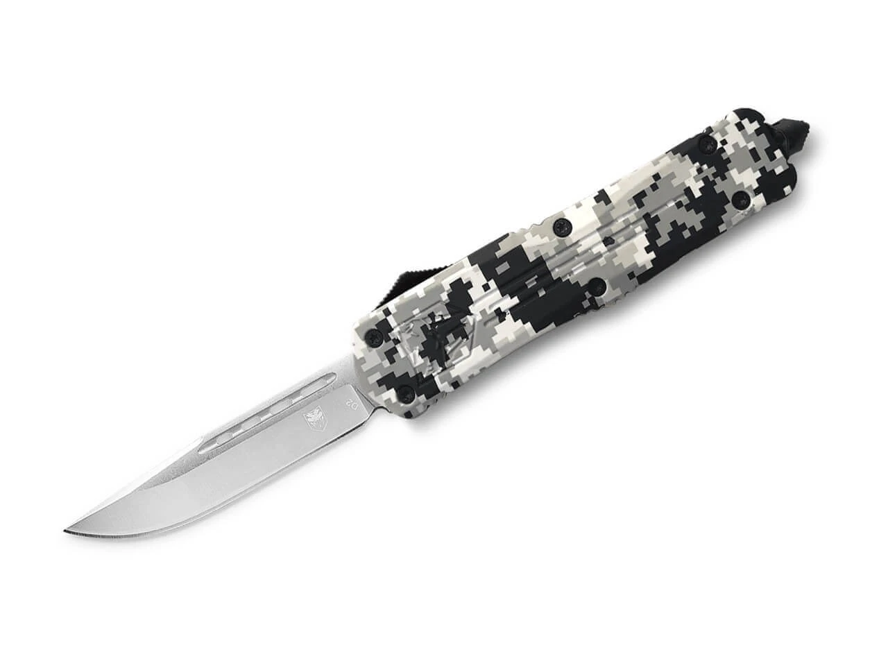 Die ausgewachsene Variante des beliebten FS-3 überzeugt mit einer soliden D2 Drop Point Klinge, die pfeilschnell per Knopfdruck aus dem vorderen Griffstück kommt und bei erneutem Betätigen wieder dort verschwindet. Das OTF Messer (Out The Front) ist mit einem texturierten Griff aus hochfestem Aluminium versehen, der ein rustikales Winter Tarnmuster trägt. Der Deep-Carry Clip ist am Glasbrecher befestigt und erlaubt eine beidseitige Tip-Up Trageweise. Lieferung mit hochwertigem Nylon Etui.