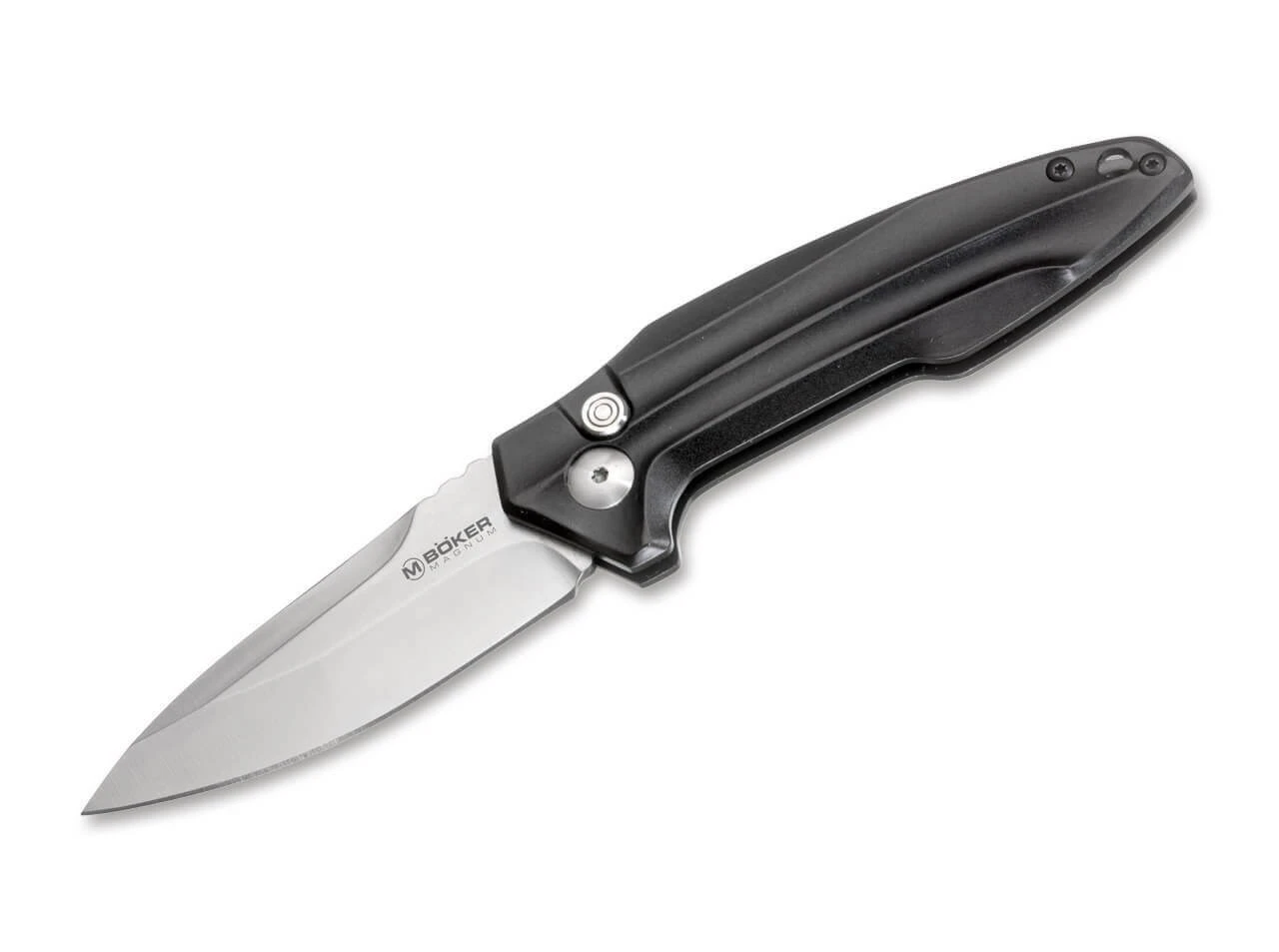 Der Name des Magnum Final Flick Out bringt zum Ausdruck, dass die Qualität eines Springmessers in diesem Preissegment nicht mehr zu steigern ist. Der absolut spielfreie Klingengang und die unwahrscheinlich kräftige Feder sowie der trocken und präzise ansprechende Druckknopf waren in dieser Klasse bisher nicht vorstellbar. Hinzu kommt ein meisterhaftes Design, welches das Taschenmesser mit schwarzem Griff zu einem flachen Handschmeichler mit Suchtfaktor werden lässt. Die Spearpoint-Klinge mit ausgeprägter Fehlschärfe wird aus rostfreiem 440A–Edelstahl gefertigt. Ein gefällig integrierter Clip (Tip-up) und eine Fangriemenöse runden die Ausstattung des Messers ab.