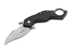 Das Gespür, das der israelische Messerdesigner und Ingenieur Boris Manasherov für Ergonomie und praxisgerechtes Design besitzt, zeigt sich in all seinen Entwürfen. Und auch wenn das Böker Plus Toro sicherlich nicht dem durchschnittlichen Alltagsmesser entspricht, belegt es dennoch eindrücklich das hohe Können des Designers. Die perfekte Handlage mit dem Ring am Griffende, die geschwungene Klinge mit Öffnungshaken und die perfekt konturierten G10-Schalen machen das Handling zu einem Erlebnis. Die soliden Edelstahlplatinen mit Linerlock und die kugelgelagerte Klinge aus D2 zeichnen das Taschenmesser aus. Die Klinge mit ausgeprägtem Recurve und feiner Spitze ist mit einem Stonewash-Finish versehen. Mit umsetzbarem Clip (Tip-up/l-r).