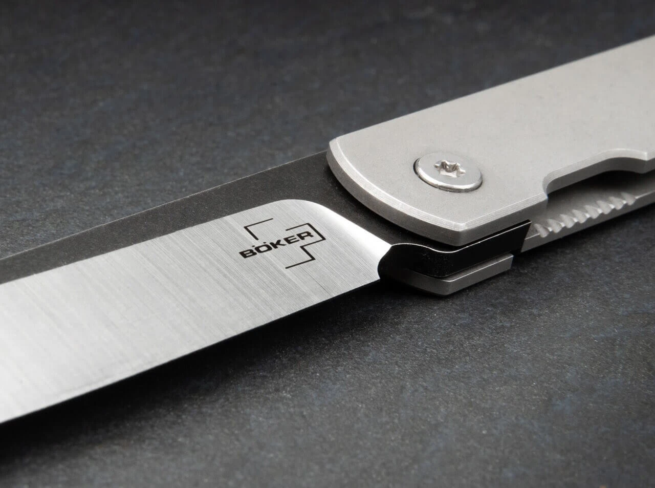 Das elegante Böker Plus Zenshin erinnert an die weltweit bekannten Higonokami Taschenmesser, die bereits seit 1896 in der japanischen Stadt Miki gefertigt werden. Anders als bei seinen historischen Vorbildern besteht der Griffkörper des Gentlemanmessers allerdings nicht aus einem einzigen Stück gefaltetem Metall, sondern aus flachen Edelstahl-Griffschalen, die mit einem matten Stonewash-Finish versehen sind. Die flach bauende Konstruktion verzichtet dabei auf zusätzliche Liner und liegt angenehm in der Hand. Die Klinge aus 440C ist mit einem aufwendigen Two-Tone-Finish und einem Flachschliff versehen. Sie wird per Klingensporn geöffnet und von einem Framelock sicher arretiert. Mit Fangriemenöse.